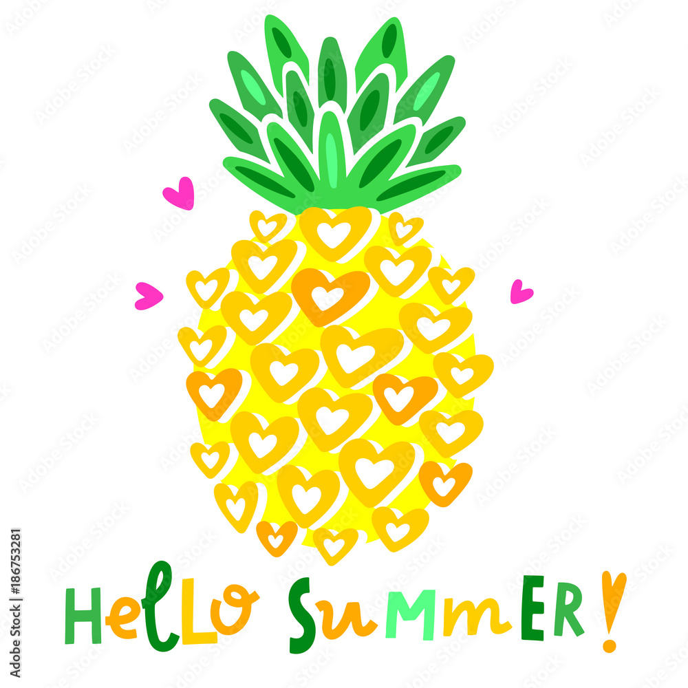 Cute Vector Pineapple Illustration Cartoon Funny Graphic Food Typography Quote Hello Summer Stock Vector Adobe Stock